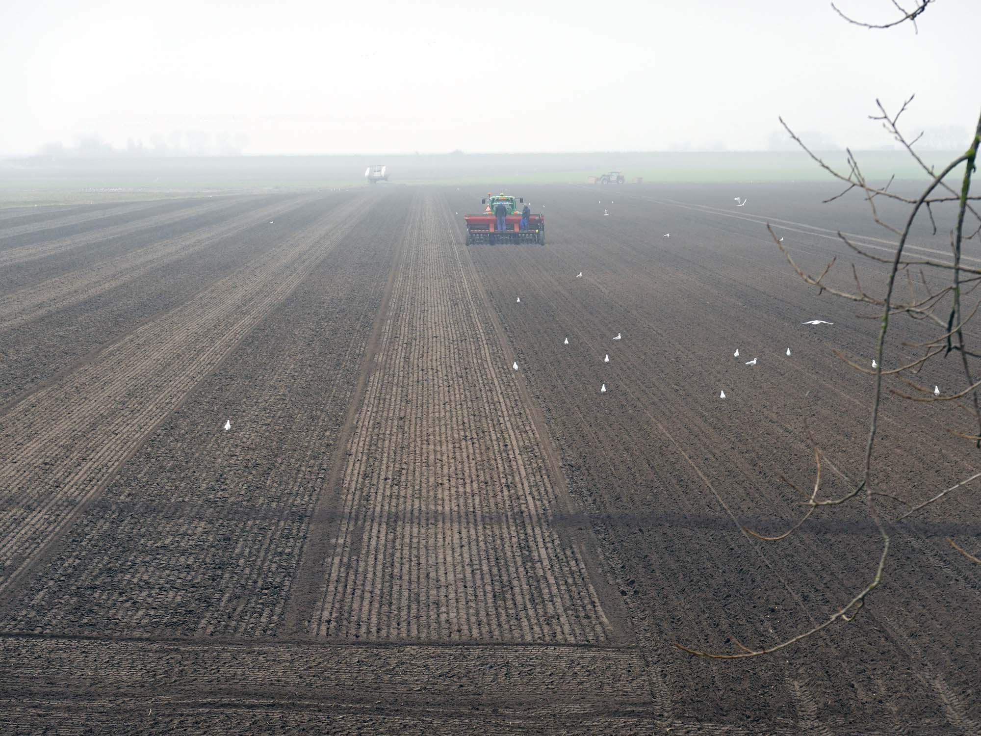 Gisteren gingen de plantuien de grond in, een hele lap, gelijk aan de groei, lekker in de miezer.