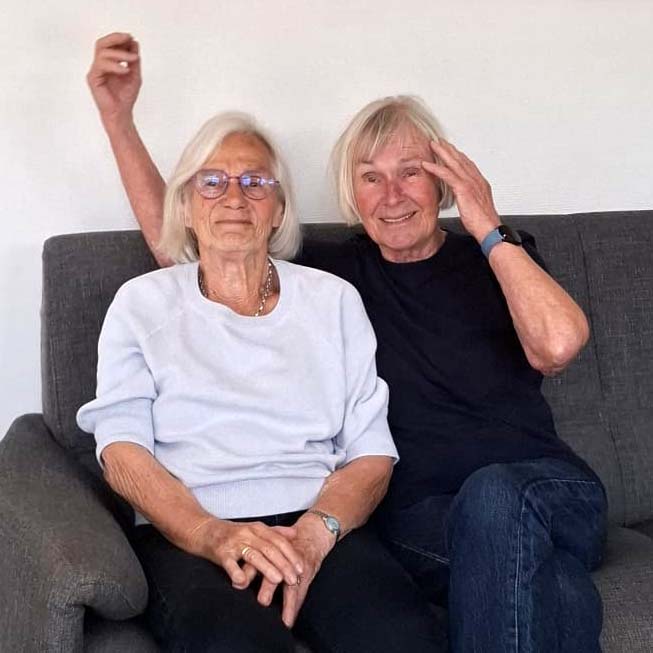 Mijn zus is net als mij, die maakt het allemaal niet zoveel uit. Wel voor het eerst op de foto met haar nieuwe bril, ik pas naar de kapper geweest, zij moest nog. Zo lijken we helemaal niet meer op elkaar vonden we zelf.