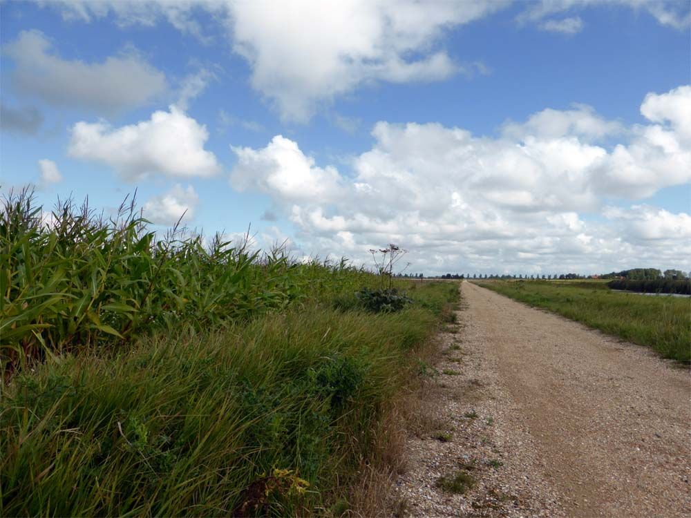 Halfverwege kom ik soms Joop tegen tegenwoordig, dan maken we even een praatje en gaan we weer ieder onze weg. Joop in rap tempo met muziek op zijn hoofd, die plukt geen mais en hoort ook geen vogeltjes, saai hoor, maar ja hij traint voor de fietstest...