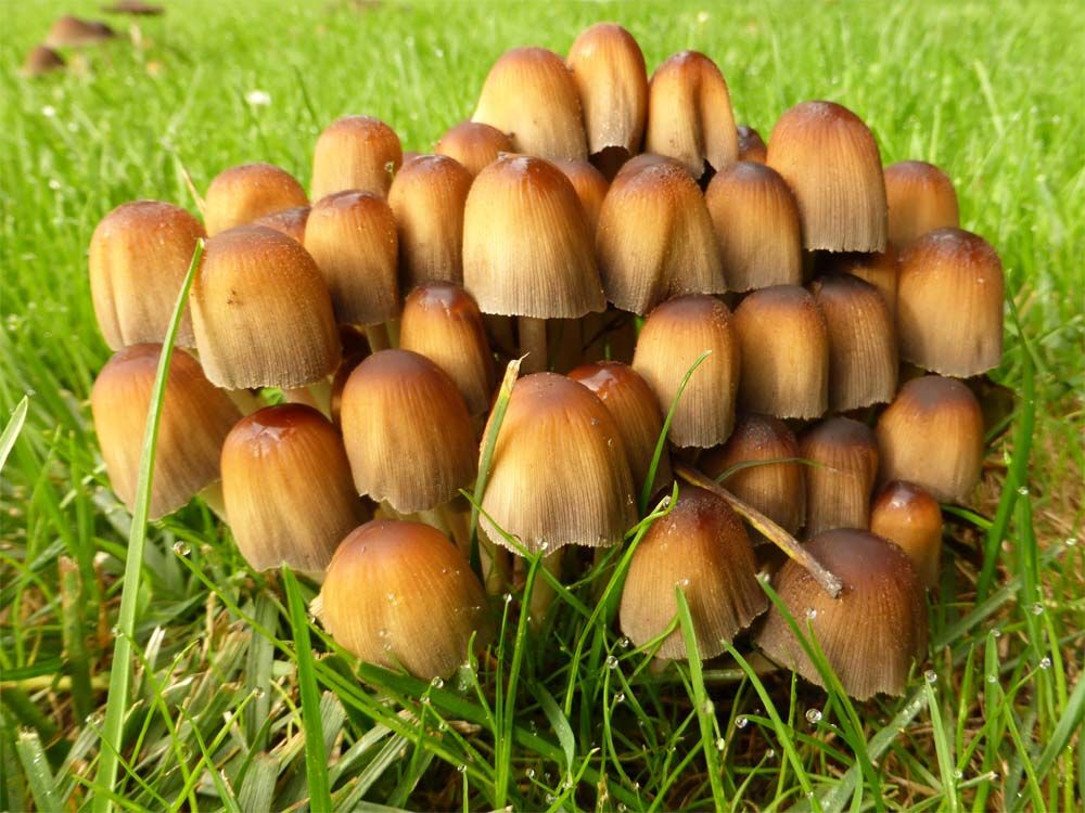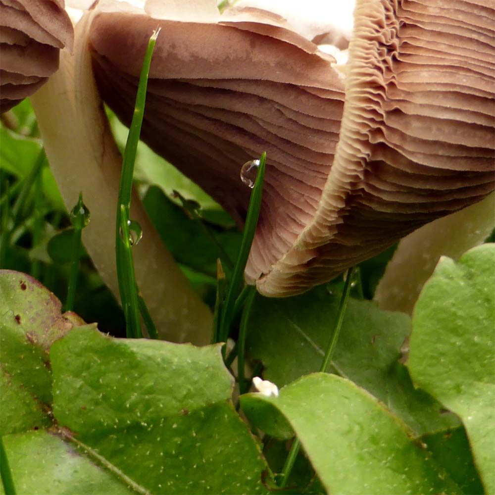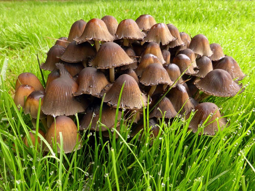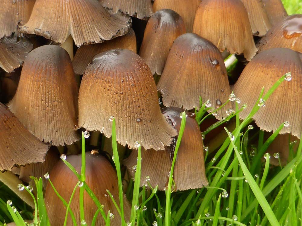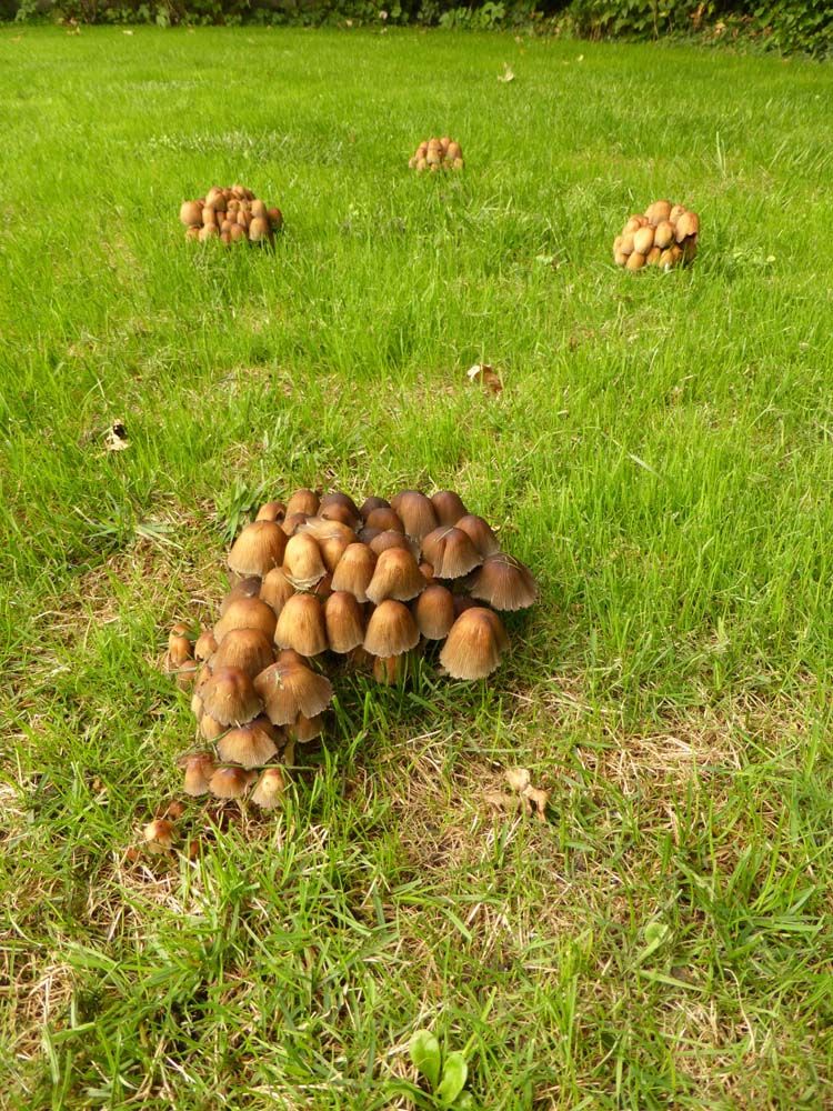 Voor degenen die het zonde vonden dat ik de paddenstoelen had omgemaaid kan ik meedelen dat ze er alweer staan hoor. Er wordt niet voor niets gezegd 'als paddenstoelen uit de grond schieten'.