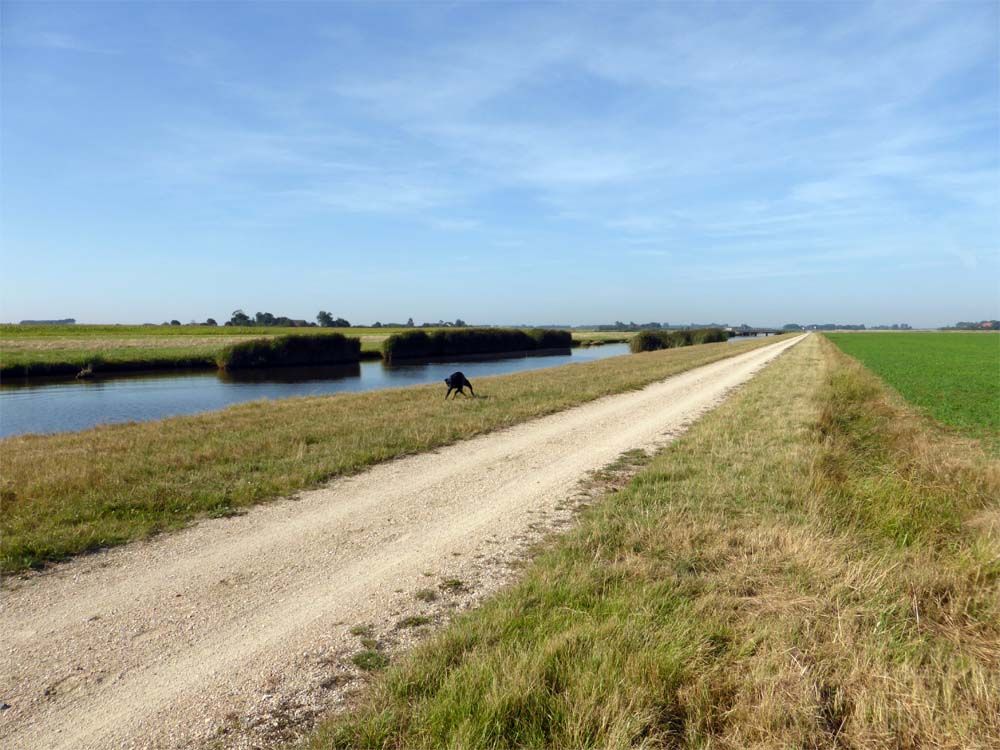Vandaag bracht ik hem al voor achten in Zierikzee en zelf was ik zodoende ook lekker vroeg aan de wandel, dat mag wel ook met die hitte. Didi plonsde lekker een paar keer in het water onderweg.