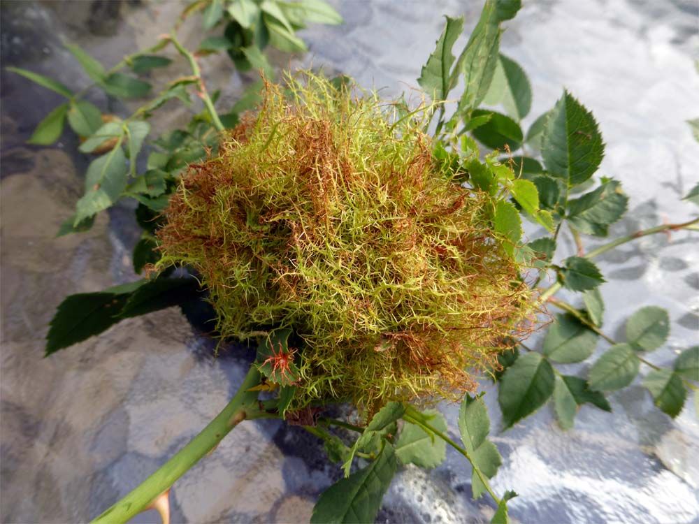 Ik vond ook bovenstaand mooi mosbolletje in een wilde roos, hoe zou dat daar nu weer komen... zo netjes rond, dat gaat toch niet vanzelf...?