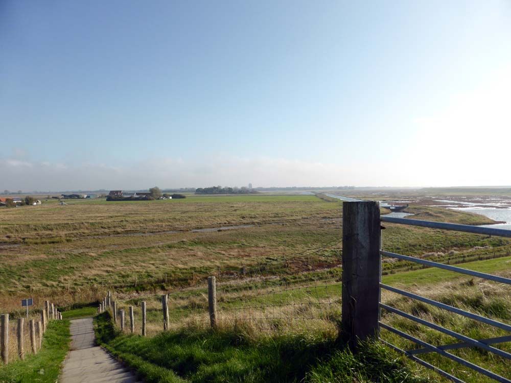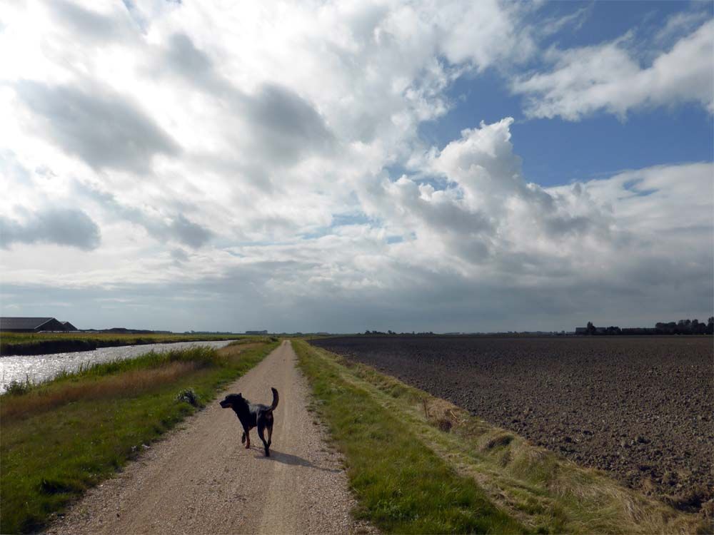 Het was heerlijk wandelen langs de zeedijk en af en toe keek ik eens naar 'die Dikke' in de verte, of hij al wat dichterbij kwam. Samen wandelen schiet beter op en ik had nu ook tegenwind, terwijl het alsmaar frisser werd.