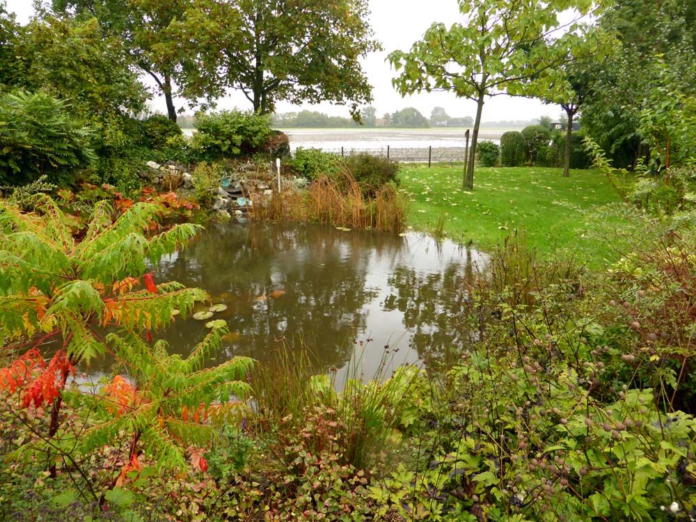 En de vijver is ook gewoon weer vol, overvol eigenlijk, hoezo lek!?