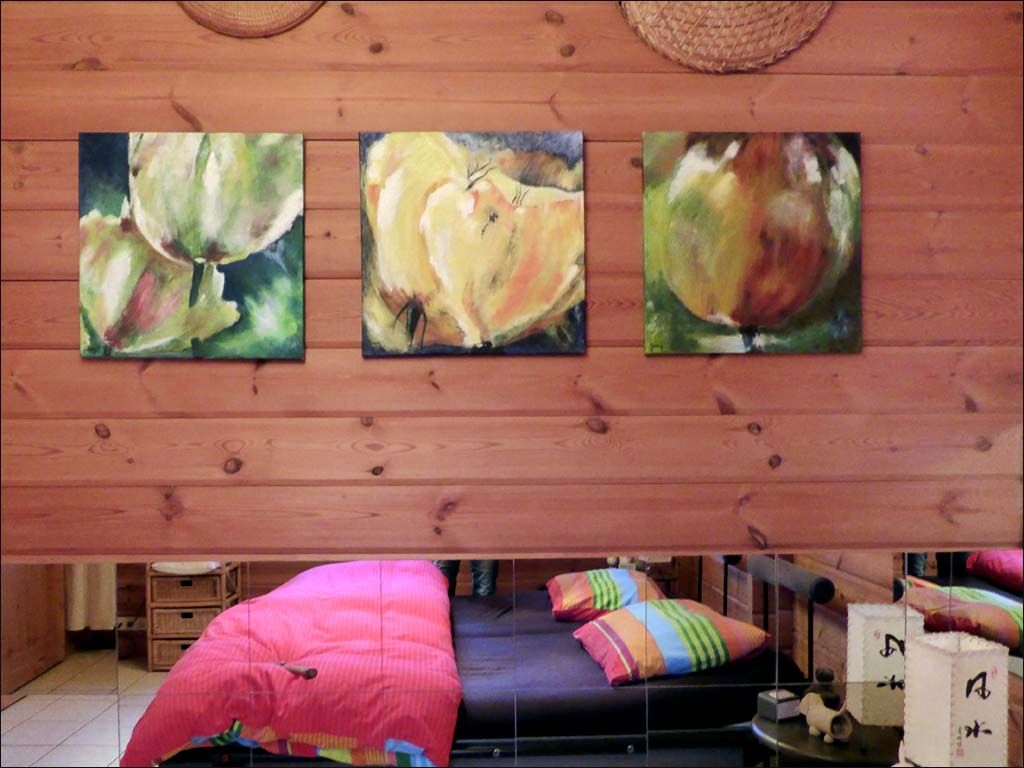 Prachtige schilderijtjes van je zus ze hangen daar mooi.