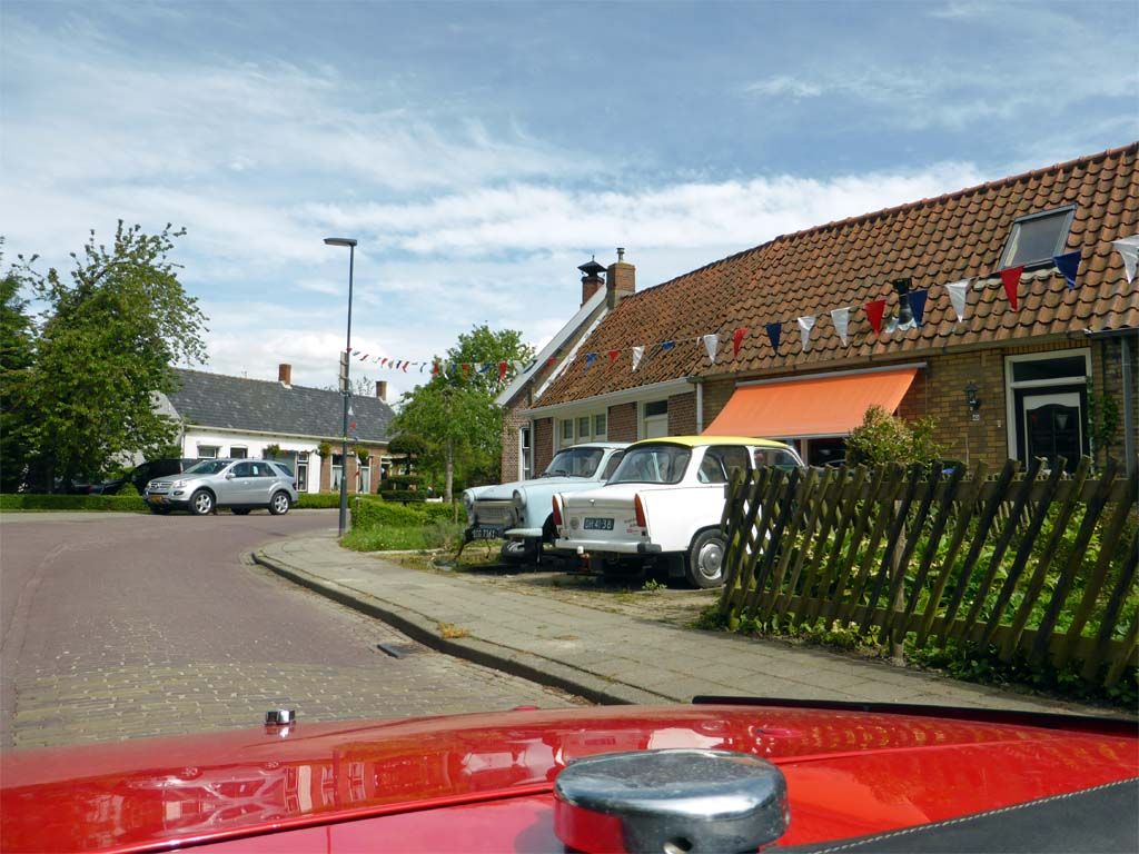 Haha, ja dat wist ik van die trabantjes, bij die ander auto stonden mensen te praten, zij stond nog in haar badjas… Daar heb ik get gevraagd en een stukje verderop bij wat ouderenmensen die zaten aan de borrel.