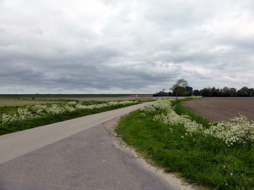 Het was heerlijk in de polder. Eerst rechtuit rechtaan met tegenwind over de fietspaden en daarna met windje mee tussen het fluitenkruid door. Jammer dat de zon niet scheen, maar om te wandelen vind ik dat eigenlijk helemaal niet erg.