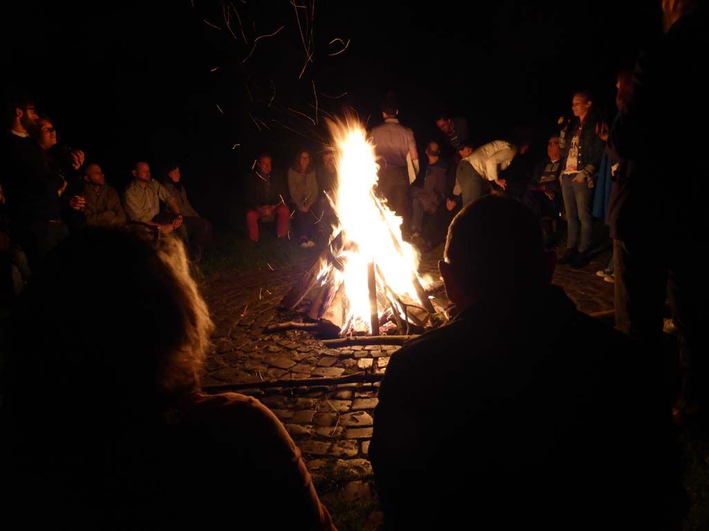 Na de door Michael zelfgemaakte tomatensoep en Hausmacher en andere heerlijkheden werd het kampvuur aangemaakt.