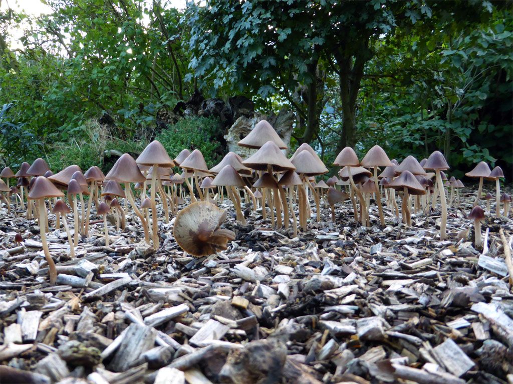 Eenmaal terug op het dorp genoten we op het terras nog even van de inmiddels doorgebroken zon, heerlijk! Thuis zochten we ook nog even de zon op en zodoende ontdekte ik mijn eigenpaddenstoelenbos.