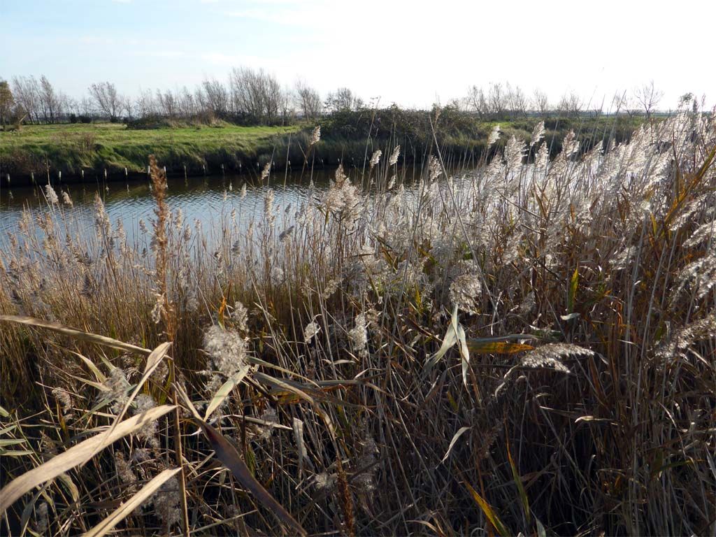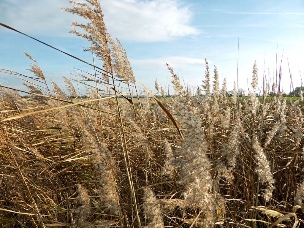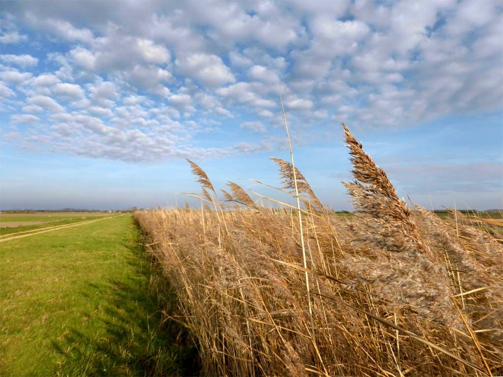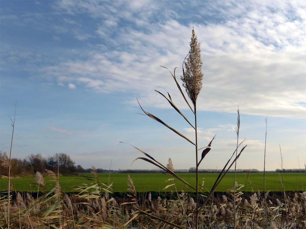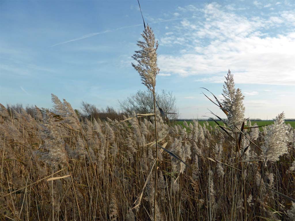 Dat riet staat er gelukkig volgend jaar ook weer. Hier schijnt nog ene waterig zonnetje, maar dat zal straks wel helemaal weg zijn.