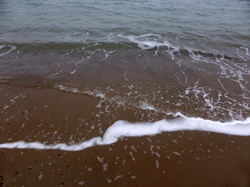 Weinig mensen te zien, wel aanrollende golfjes