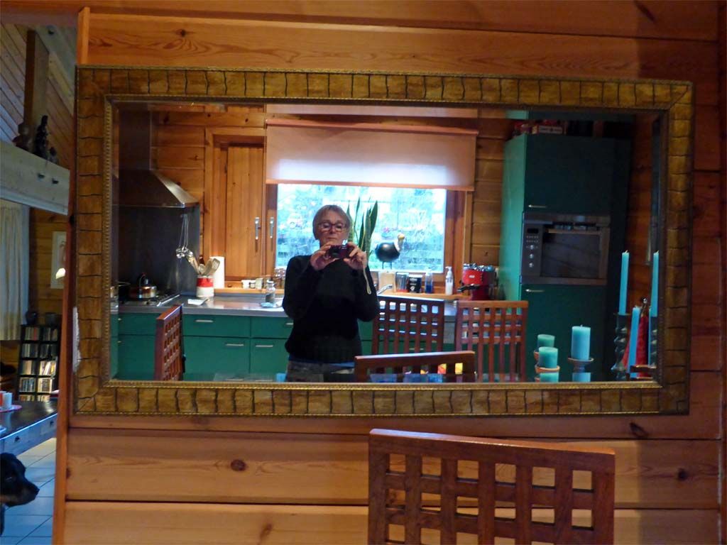 vervreemdend hoor zo’n spiegelbeeldfoto. eerst dacht ik alleen: ha, de koffiemachine is verplaatst maar toen alles andersom stond wist ik het even niet meer. goeie zet die lijst pimpen vind ik.