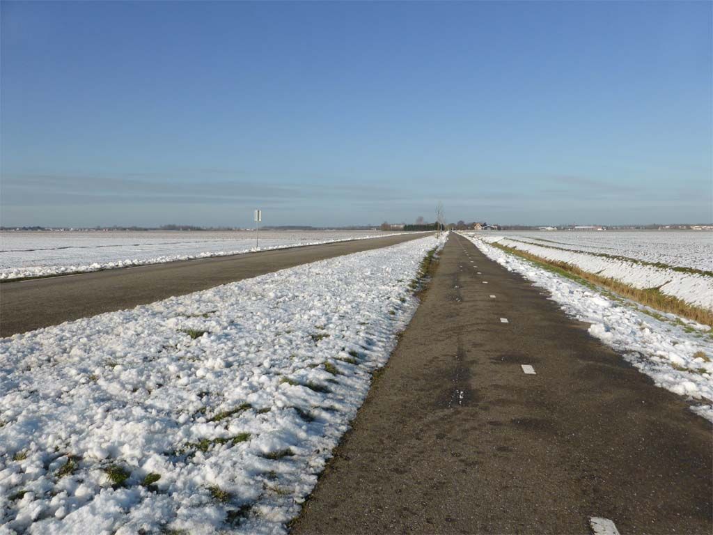 Een maagdelijk wit schelpenpad hadden we, het was best oppassen geblazen want eerdere ondergesneeuwde plassen waren best glad.