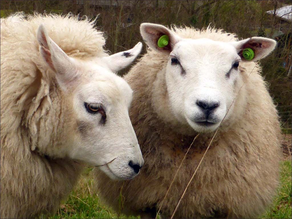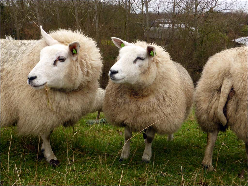 Er staan leuke vriendelijke schapen op de dijk, ze komen met z'n allen gezellig even een praatje maken. Zielig dat die oormerken steeds maar uitscheuren, daar moet toch iets anders op te vinden zijn...