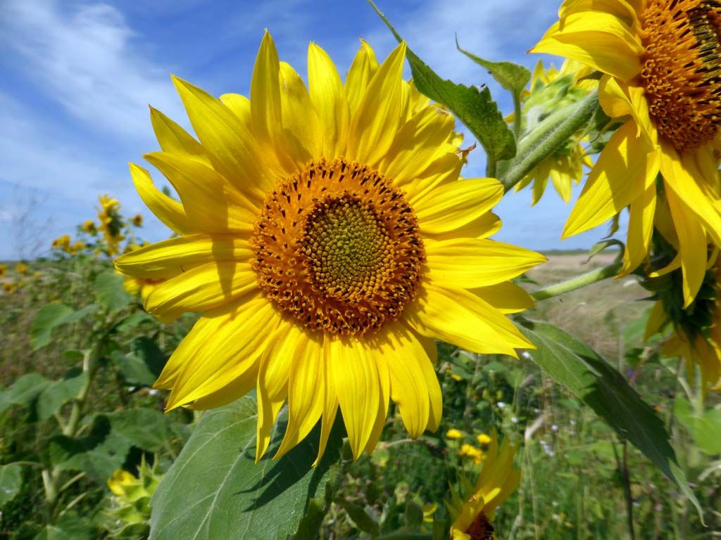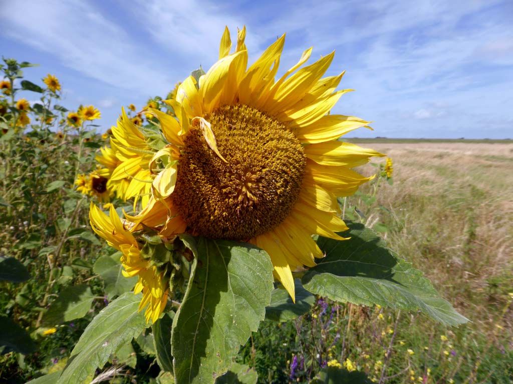We liepen weer langs de zonnebloemen vanmiddag, waar nu de zon op scheen.