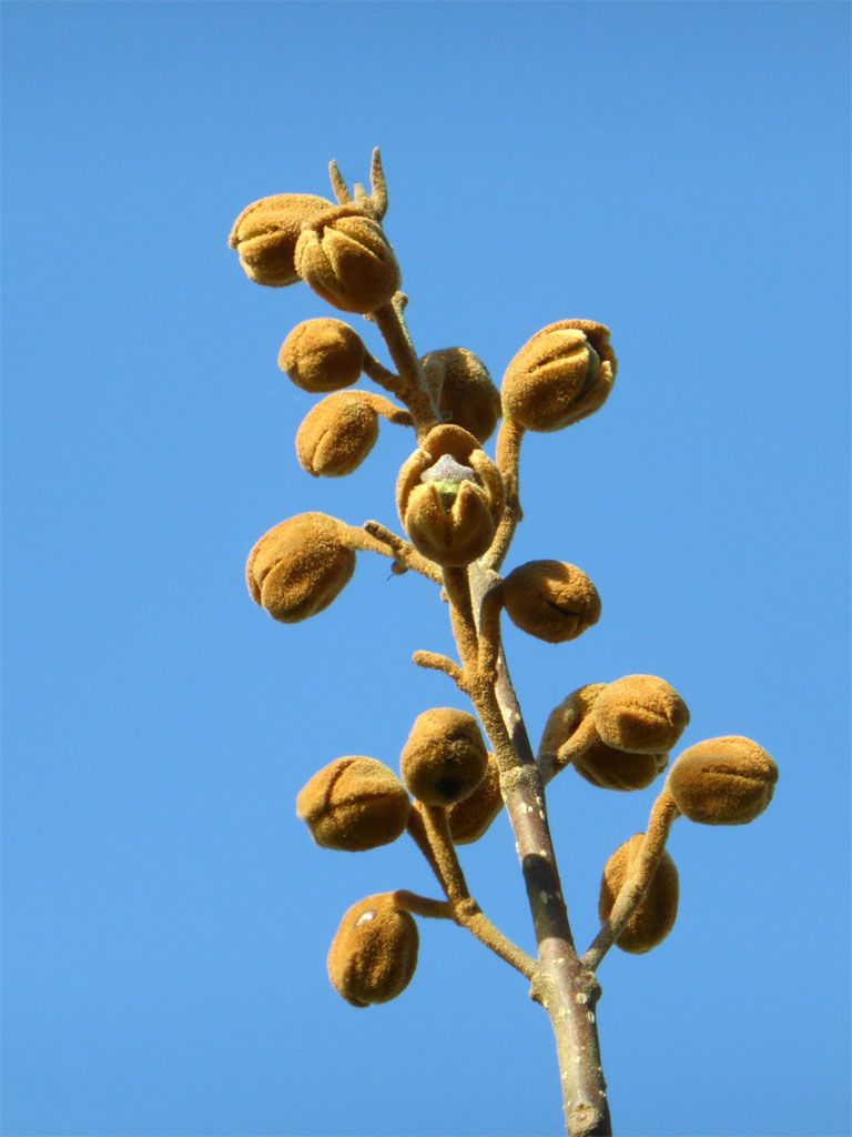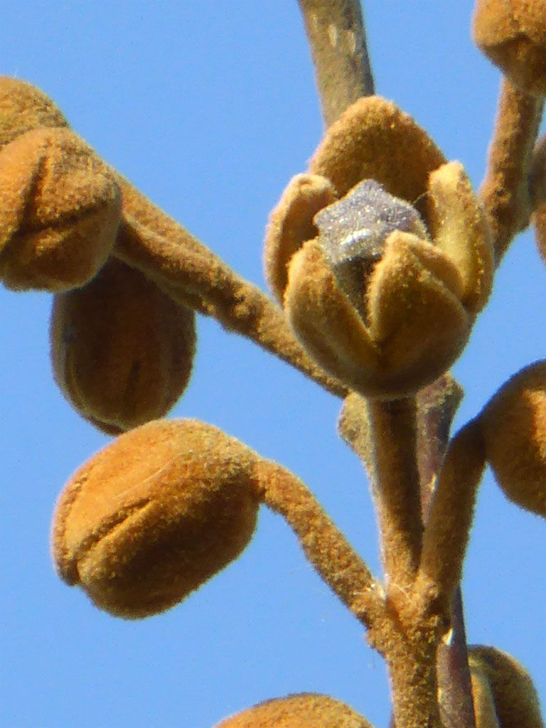 De fluwelen bolletjes van de Pauwlonia Tomentosa, waar we al sinds vorig jaar naar kijken gaan nu ook tekens van leven vertonen, ik ben zo benieuwd of ze nu echt mooi allemaal open gaan zodat de boom vol hangt met allemaal paarse toortsen.