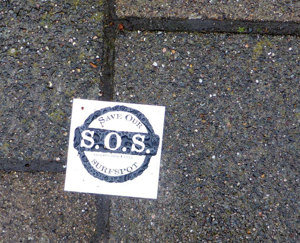 Ik kwam een verloren sticker tegen, de surfers doen hun uiterste best om te redden wat er nog te redden valt, ik hoop dat het ze lukt, want wat moeten we met een stelletje eilandbewoners met een privé steigertje. Er staan over het hele eiland de prachtigste huizen te koop, laat de eventuele kopers er daar eentje van uitzoeken... ;)