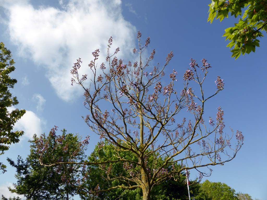 De bloeiende Pauwlonia Tomentosa, ik ben er nog steeds niet kapot van. De kelkjes bloeien ook maar een dag of wat en vallen dan op de grond.