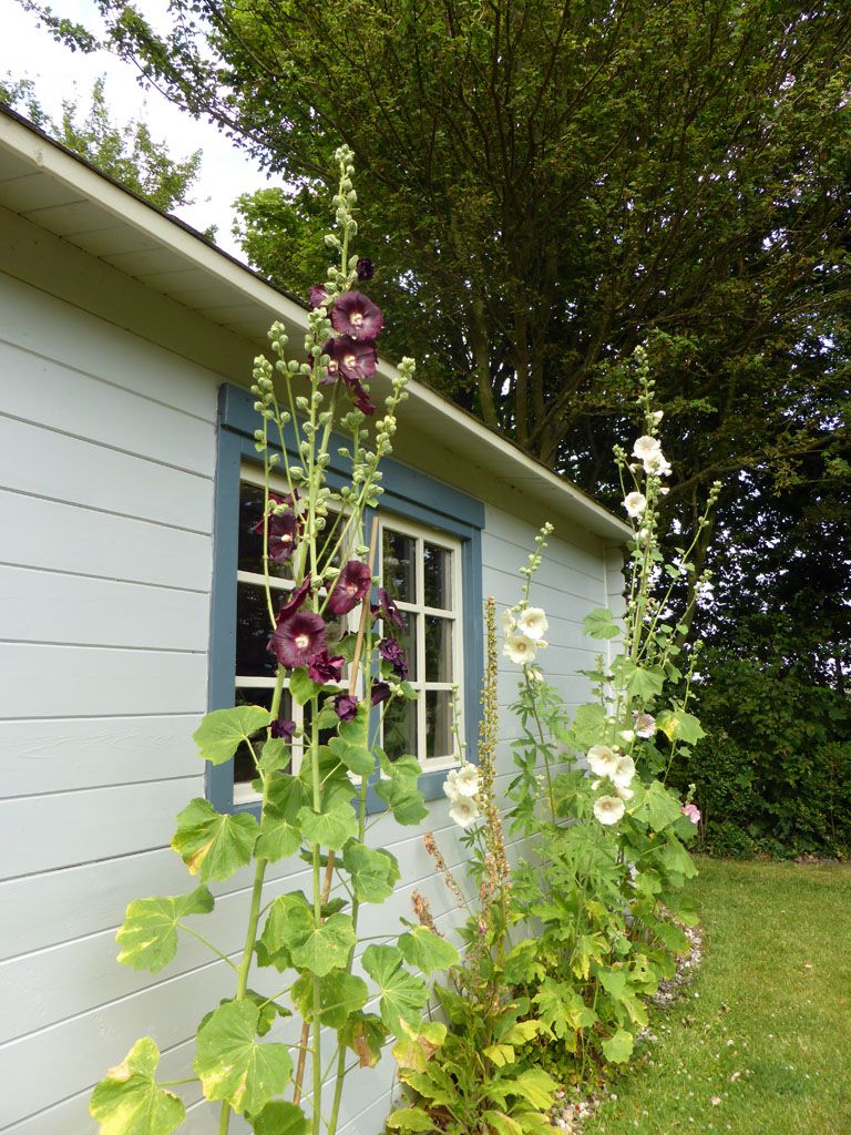 Je stokrozen staan er prachtig bij. Wij hebben ze hier een paar jaar geleden eens gezaaid, maar dat is helaas niets geworden.