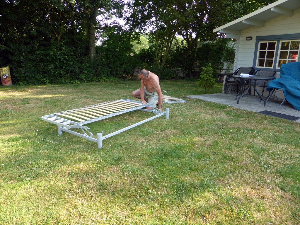 We werden wakker gebeld door de Ikea bezorgdienst vanmorgen. Hij bracht een leuk pakketje waar Joop weer even zoet mee was. De oude slaapbank was al naar de milieustraat dus we hadden ruimte voor een nieuwe. Ik denk dat deze wel wat lekkerder ligt.