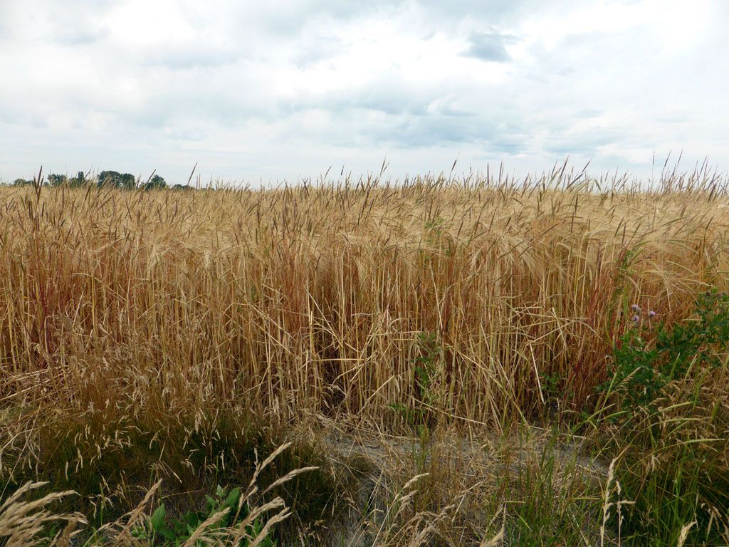 De tarwe begint al aardig te rijpen en de 'heeste' ziet al zo geel als wat. Ik vind het een feest om er tussendoor te lopen.