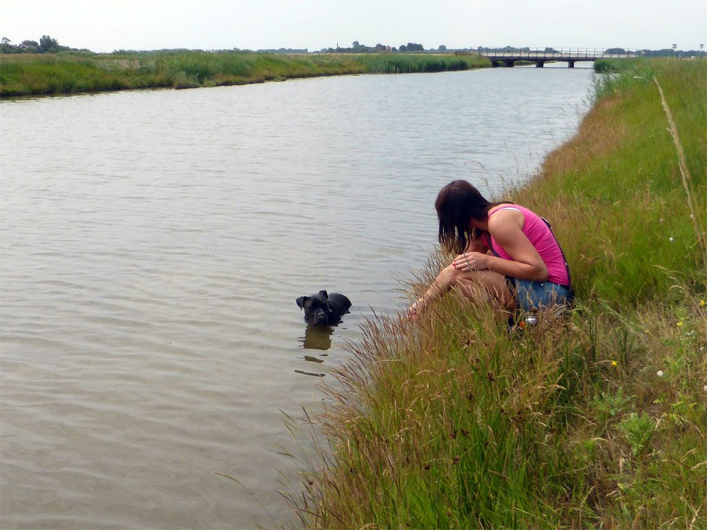 Ja jammer maar je doet er niets aan. Honden hebben het niet zo snel koud, het ziet er lekker uit, heerlijk spelen in het water