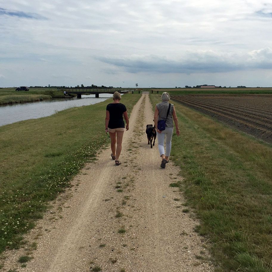En gewandeld natuurlijk! Joop ging niet mee vanwege zijn rug. Freek heeft wel haaruitval, maar kan daar ook prima mee wandelen, hij is alleen nog wat voorzichtig vanwege verbrandingsgevaar. Het staat wel wat vreemd en hopelijk komt zijn mooie haardos ook nog eens terug maar voorlopig gaat hij even gemillimeterd door het leven.