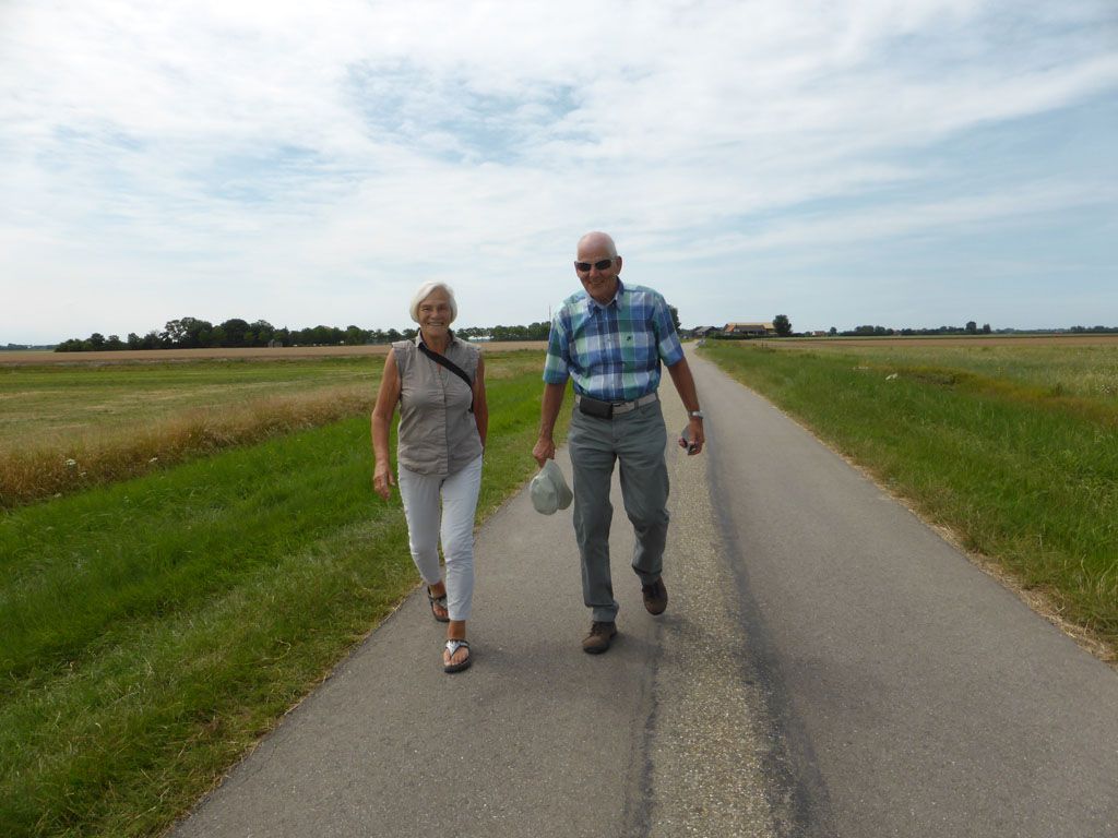 We ontmoetten onderweg ook nog een echtpaar afkomstig uit Dreischor. De vrouw viel met haar fiets net toen ze ons voorbij gereden waren en had lelijke schaafwonden, maar het waren ouwe taaien, een beetje Dermatol deed wonderen en natuurlijk waren het bekende namen vooral voor Janny, die gaat daar vanavond op bed nog eens verder over nadenken zei ze.