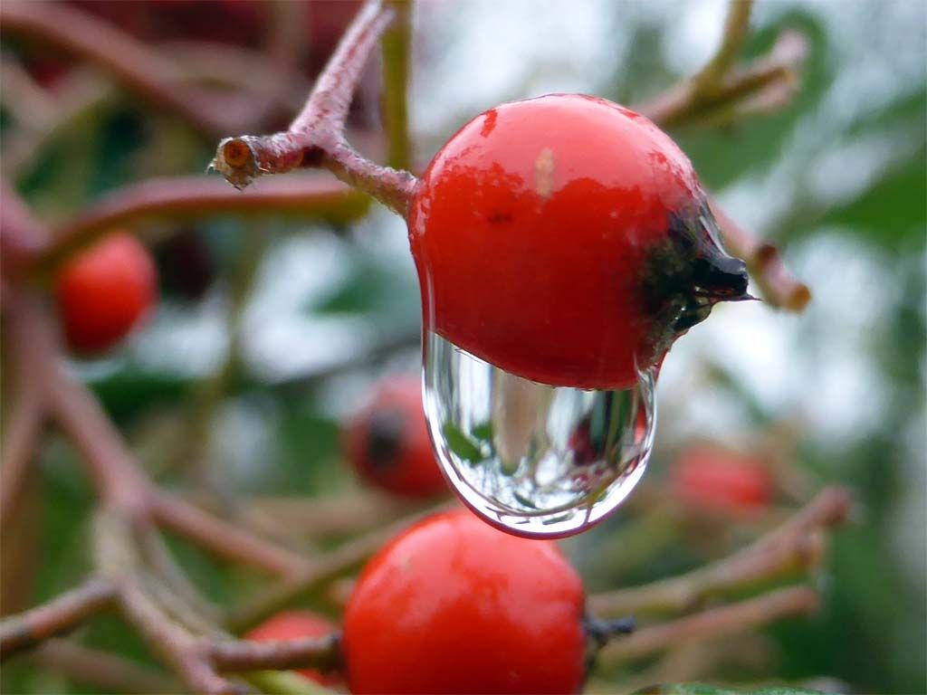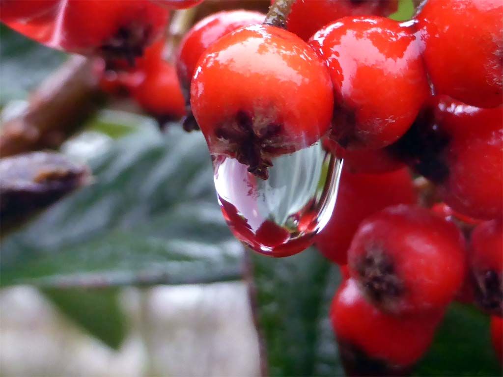 Wat zei vadertje Cats dat toch weer mooi. Je druppelfoto’s zijn ook prachtig, en wat zijn die bessen nog lekker rood. Regen heeft soms ook wel wat.