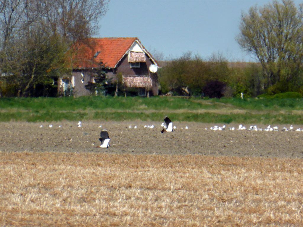 Kievieten, druk manoeuvrerende vogels en moeilijk in beeld te vangen, maar ik deed mijn best. Kom ik thuis heb ik er gewoon twee op één foto, niet dat je zegt wat een superfoto, maar doe het maar eens na.