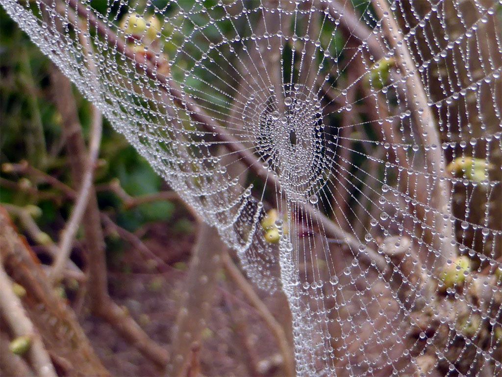 Het was herfstig vanmorgen, mist en webben en dat bleef best een tijdje hangen. Ik vermaakte me weer een paar uurtjes in de tuin met randjes af steken en hier en daar een beetje snoeien. Klaar ben je eigenlijk nooit.