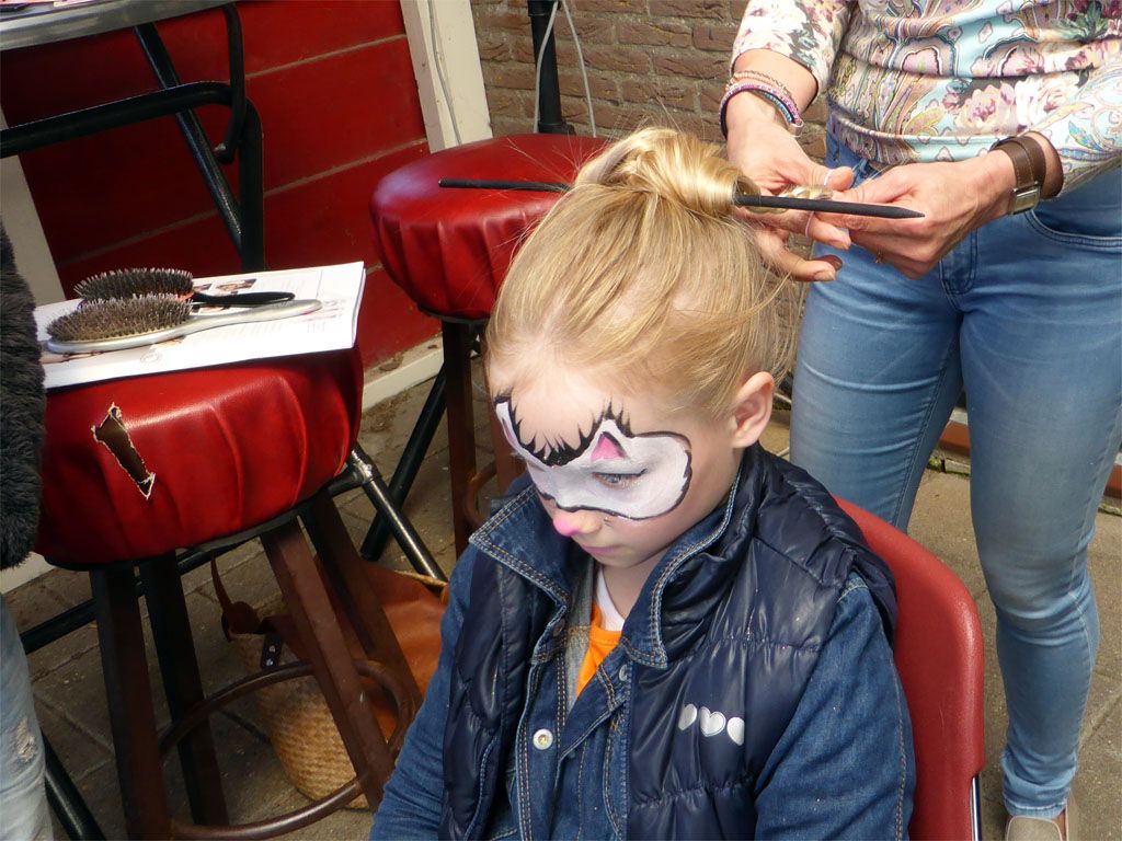 met chocolade! Janny zat er helemaal onder, maar die had voor de foto ineens haar gezicht schoongepoetst