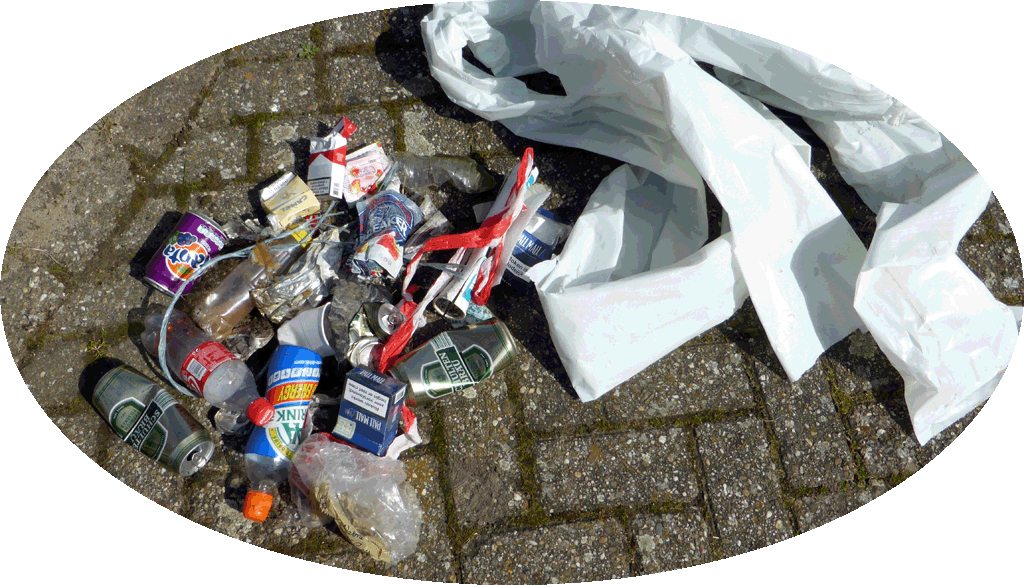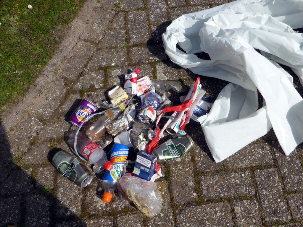 Eerst weer een paar uur in de tuin en daarna een wandeling. Op het fietspad kwam ik een plastic flesje tegen en omdat ik toch nog een zak in mijn tasje had besloot ik het laatste stuk nog maar wat afval te verzamelen, want ik had al gezien dat er alweer behoorlijk wat lag..