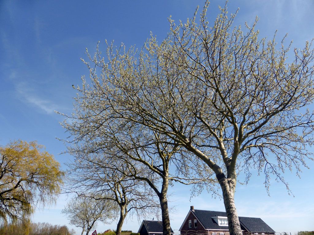 net als de pruimen en de kersen in de tuin, een enkel bloesempje bloeit al.