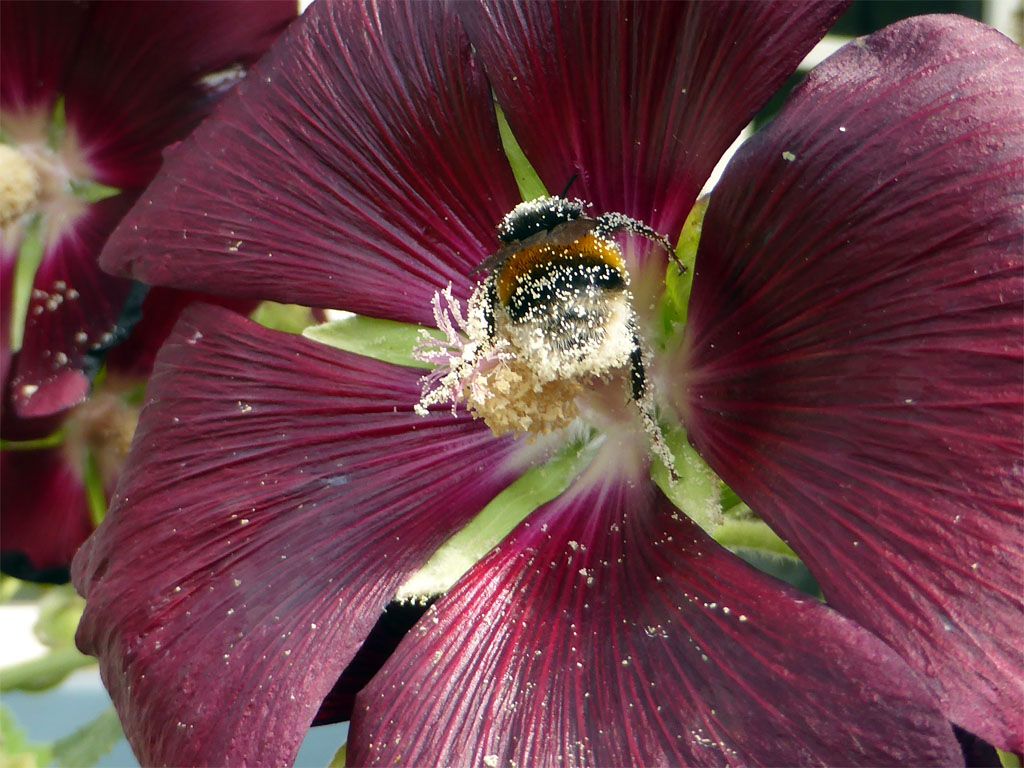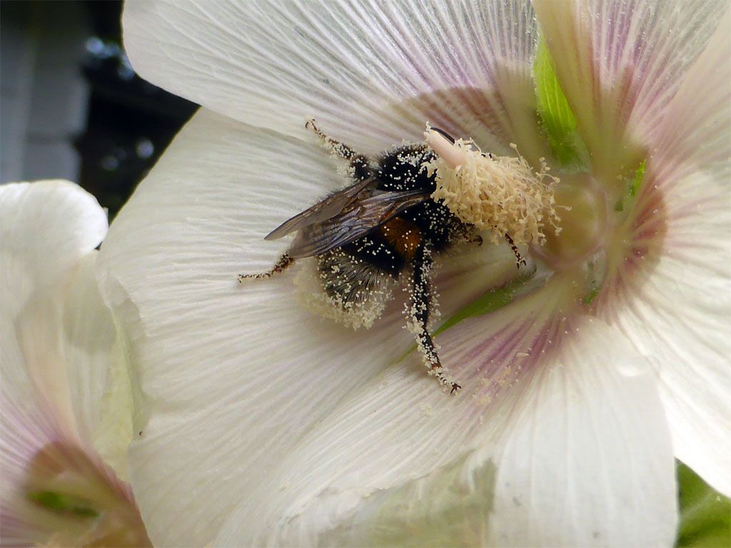 De tuin is weer lekker opgefrist na de regen van vandaag. Vanmorgen nog een beetje extra steun aan de langste stokrozen gegeven die nu, zwaar van het water, wel heel erg scheef gingen hangen.