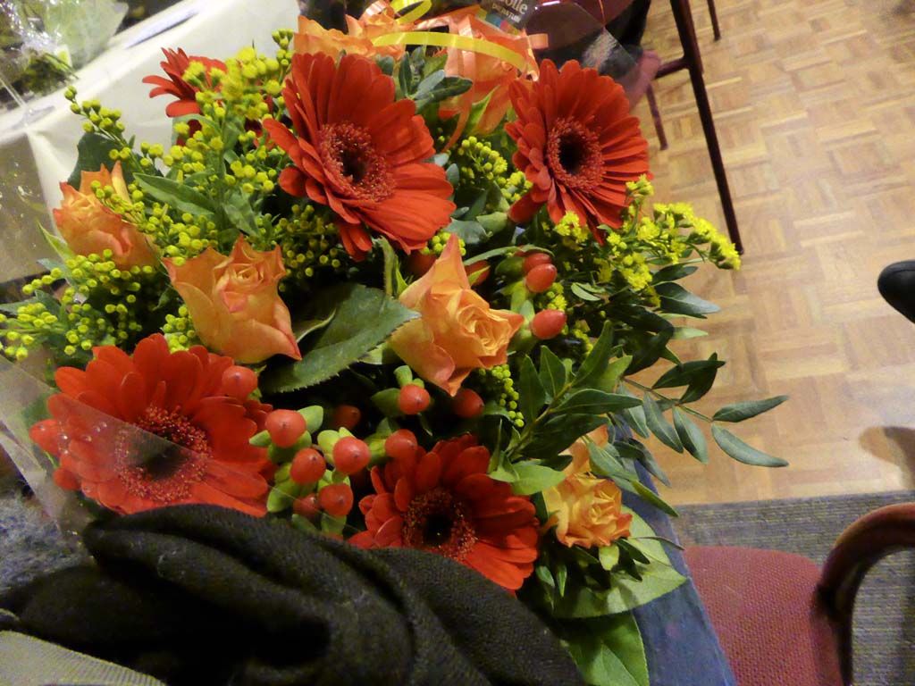 Een blommetje voor de dames en eindelijk konden we weer naar huis. Het was leuk en gezellig, maar wel erg lang. Dat vond Didi ook, al had ik vanmorgen eerst nog wel een fijn rondje met haar gedaan.