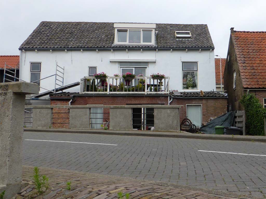 Het huis van de overburen aan de andere kant van de oprit. Buurman is altijd druk met het opknappen van het huis, hij heeft vooral geschilderd sinds we hier wonen. Ze hebben een heus bordes, altijd veel aanspraak en tijd voor een praatje, vrolijke buren!