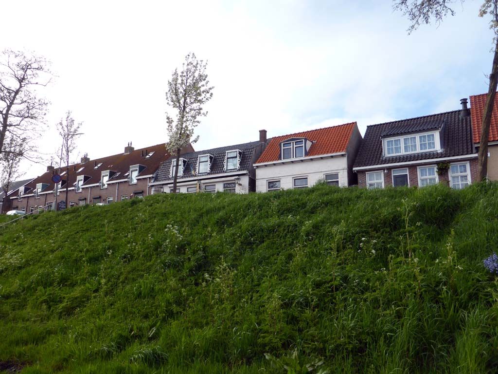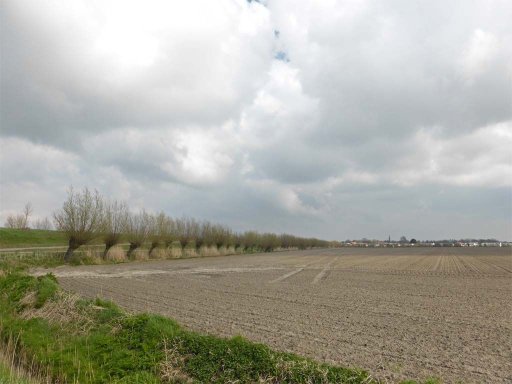 De bomen op de dijk zijn gerooid, het maakt het beeld wel wat rustiger en de toren is nu al van verre te zien. De dijkhuisbewoners zullen het ook wel merken wat licht betreft.