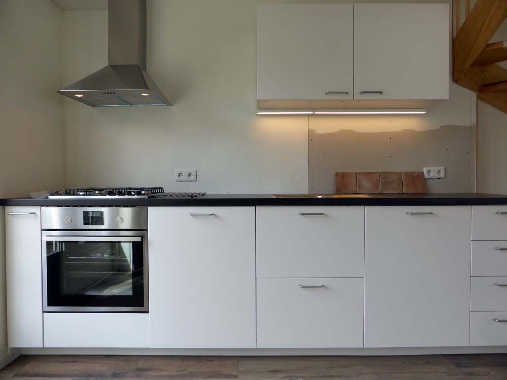 Een een lampje onder de kastjes, heel gezellig, dat heb ik hier niet omdat ik hier naar buiten kijk, ook leuk!
