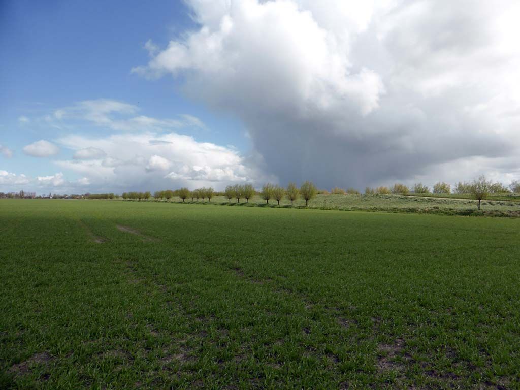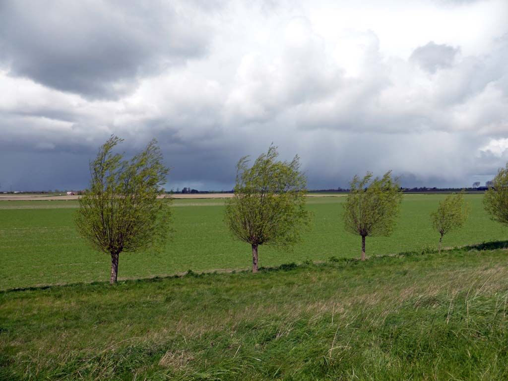 We hielden het niet droog en schuilden onderaan de dijk achter een talud, wat ook maar voor de helft lukte.