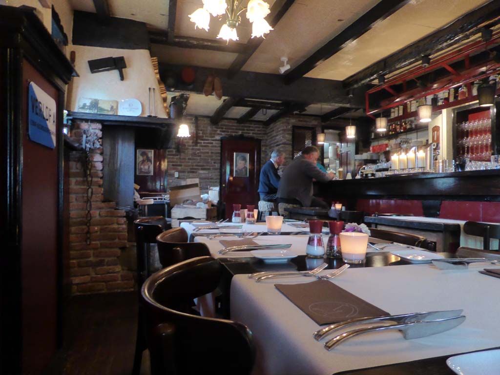 Ik mocht ook niet koken van de mannen, zo dicht bij het pas getegelde stuk, heel vervelend natuurlijk, maar gelukkig was er een aanschuifmaaltijd bij de Ouwe Smisse. Een volle zaak en lange gedekte tafels, met verrassende tafelgenoten. Erg gezellig en voor herhaling vatbaar.