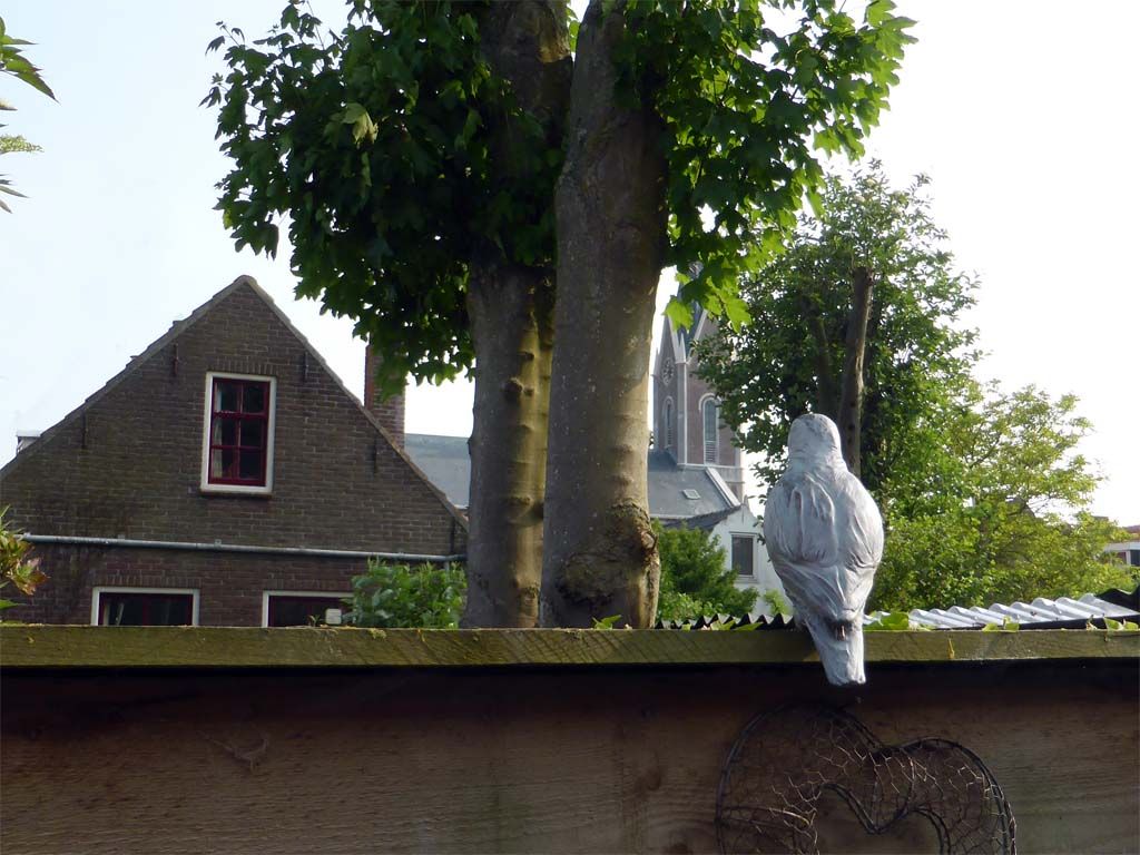 De laatste duif kijkt uit op de kerktoren, het is een rustig beestje.