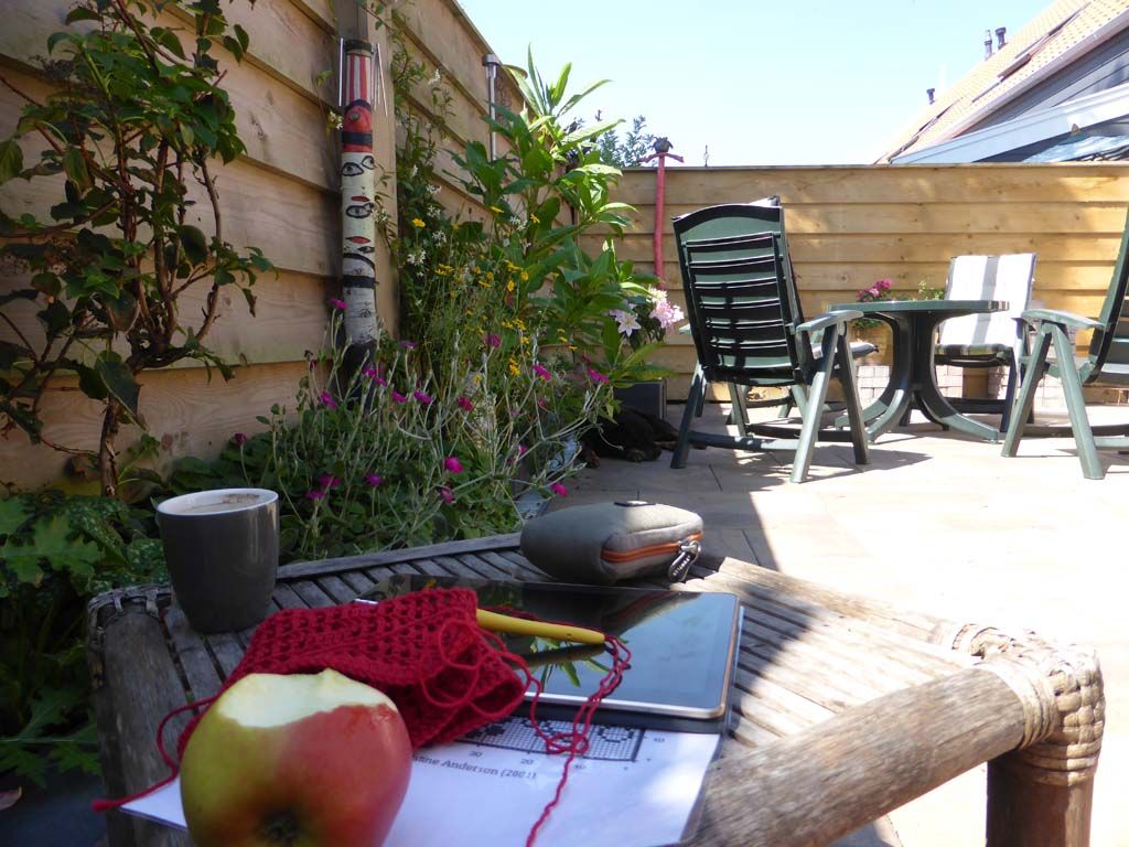 We maakten een fijne ochtendwandeling en daarna haakte ik lekker in de schaduw verder aan mijn rode gordijn.