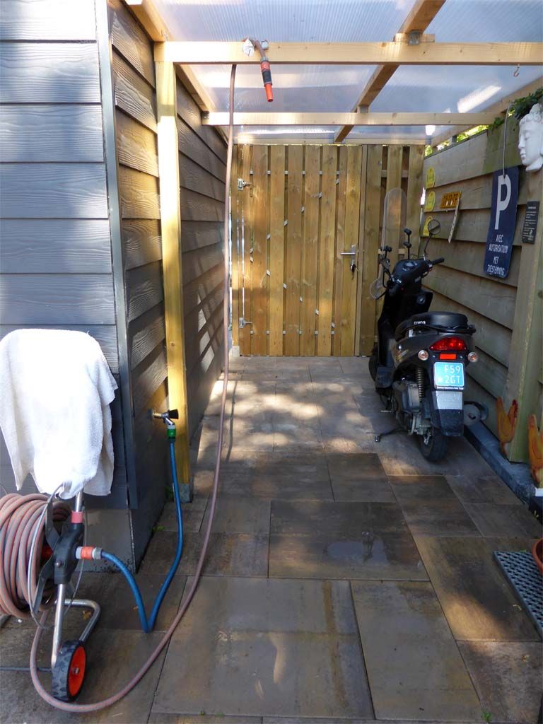 Ik heb inmiddels wel weer een buitendouche, heerlijk! Het water in de slang warmt op en zo langzamerhand wordt het steeds kouder. Erg verfrissend!