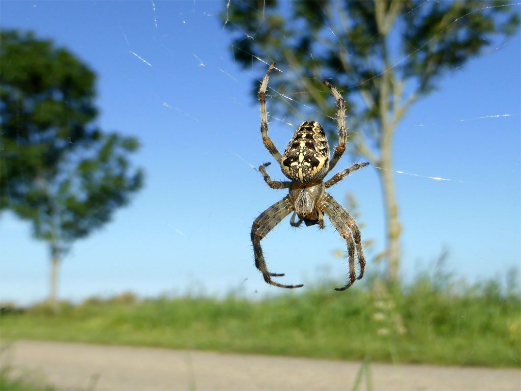 Het begint zo langzamerhand toch een beetje nazomer te worden, inclusief spinnen en webben, maar het is goed vol te houden zo. Niet te heet en 's avonds koelt het lekker af.