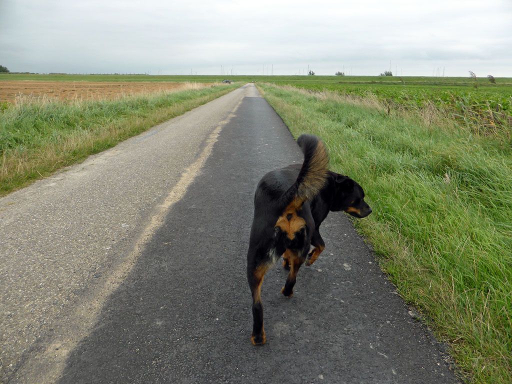 Doordat ik Didi meer uit moet laten zijn de dagen toch anders. Ik drink altijd eerst een kop thee met een banaan en als die nog maar goed en wel op zijn vindt ze het toch tijd worden om even naar buiten te gaan. Als het lekker is doen we dan ineens weleens een rondje, maar meestal een stukje op of onder deze of gene dijk.