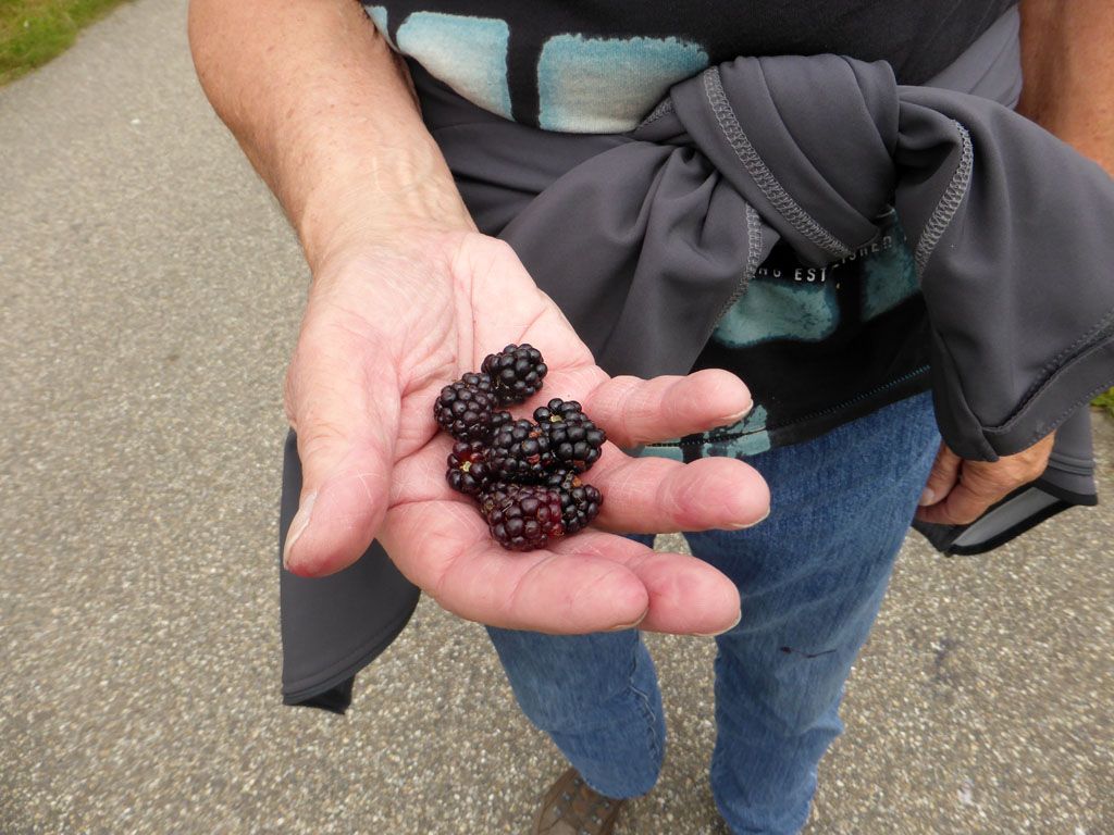 Het is bramentijd, ze beginnen nu langzaamaan te rijpen en we plukten er zo hier en daar eens een paar.