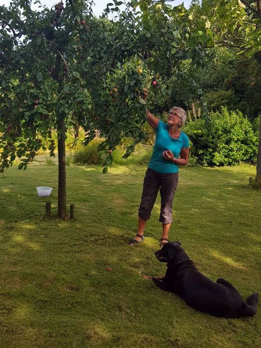 De pruimen gaan zo langzamerhand rijpen er zitten veel kleintjes tussen maar ook mooie grote, heerlijk! Vooral in het begin lust ik er wel pap van. Silvia hielp ook gezellig mee.