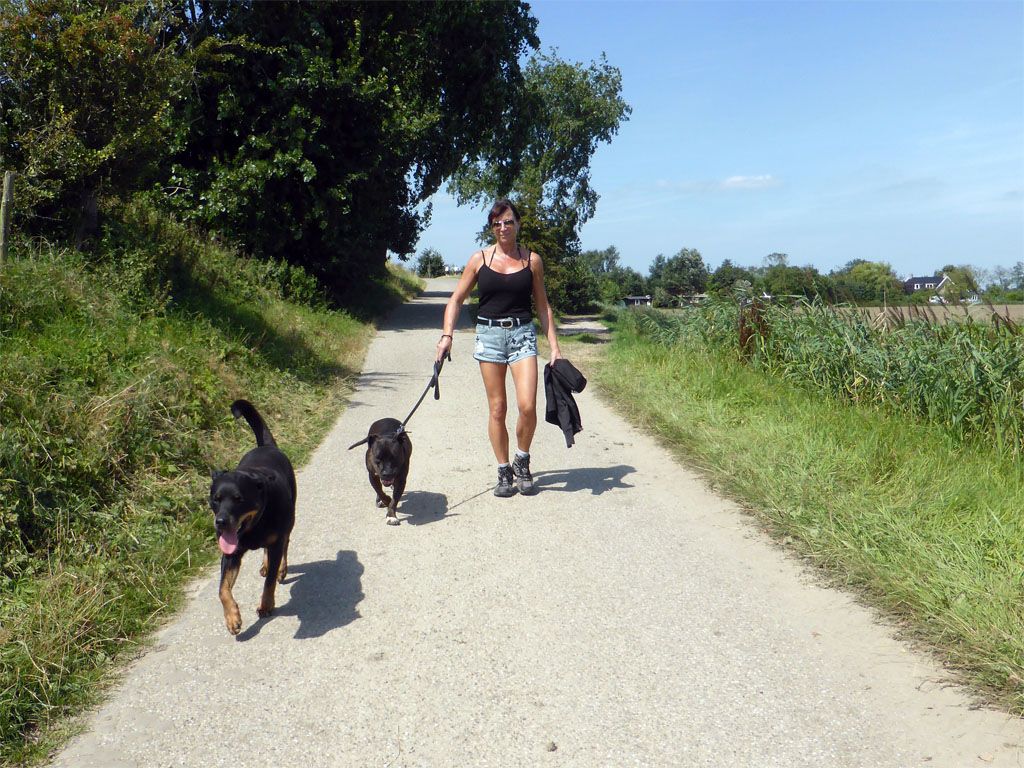 En toen ik eigenlijk aan het eind van de dijk rechtsaf wilde, had Didi daarover toch andere gedachten.. we moesten toch echt links hoor, daar kon je zwemmen en dat deden we dus maar.