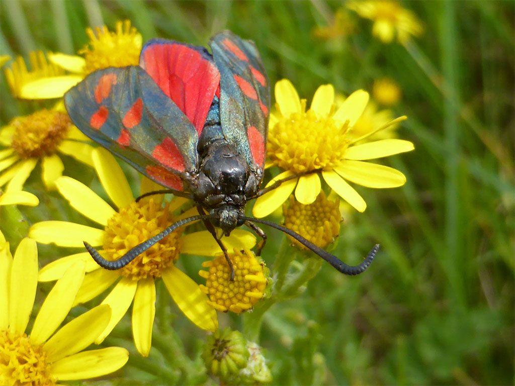 De Hells Angels onder de vlinders, ze zien er stoer uit met hun rood zwarte pakje, gelooide koppen en gekrulde snorren, maar vliegen ho maar...